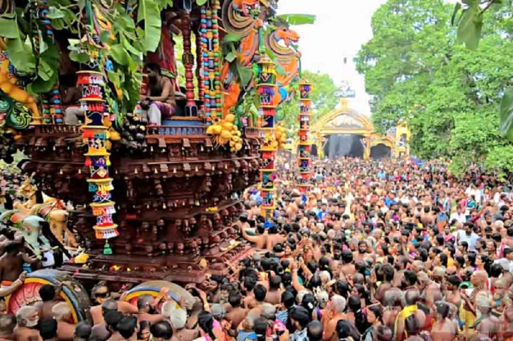 கடலென குவிந்த பக்தர்களின் அரோகரா கோக்ஷம் விண்ந்திர முழங்க, வரலாற்று சிறப்பு வாய்ந்த அன்னதான கந்த என சிறப்பிக்கப்படும் யாழ்ப்பாணம் செல்வச் சந்நிதி முருகன் ஆலய தேர்த்திருவிழா இன்று இடம்பெற்றது.