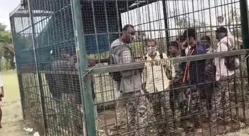 கர்நாடக மாநிலத்திலுள்ள சாமராஜநகர் மாவட்டத்தைச் சேர்ந்த கிராம மக்கள் ஒன்றிணைந்து வனத்துறை அதிகாரிகளை புலி கூண்டில் அடைத்த சம்பவம் பெரும் பரபரப்பை ஏற்படுத்தியுள்ளது.