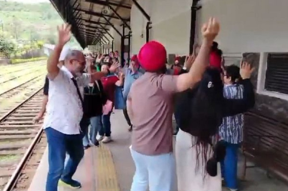 நானுஓயா புகையிரத நிலையத்தில் இந்திய சுற்றுலா பயணிகள் (13) சனிக்கிழமை பாடல்களை பாடி அதற்கேற்ப உற்சாகமாக நடனமாடி மகிழ்ந்தனர்.