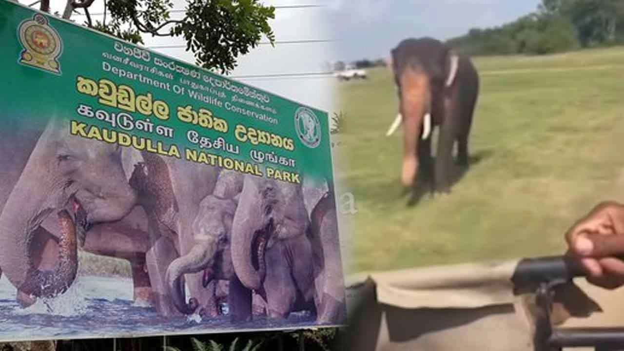கவுடுல்ல தேசிய பூங்காவை பார்வையிடச் சென்ற சுற்றுலாப் பயணிகளின் ஜீப் ரக வாகனத்தை தந்தம் கொண்ட யானை ஒன்று துரத்தி வரும் காட்சி தொலைபேசியில் பதிவு செய்யப்பட்டுள்ளது.