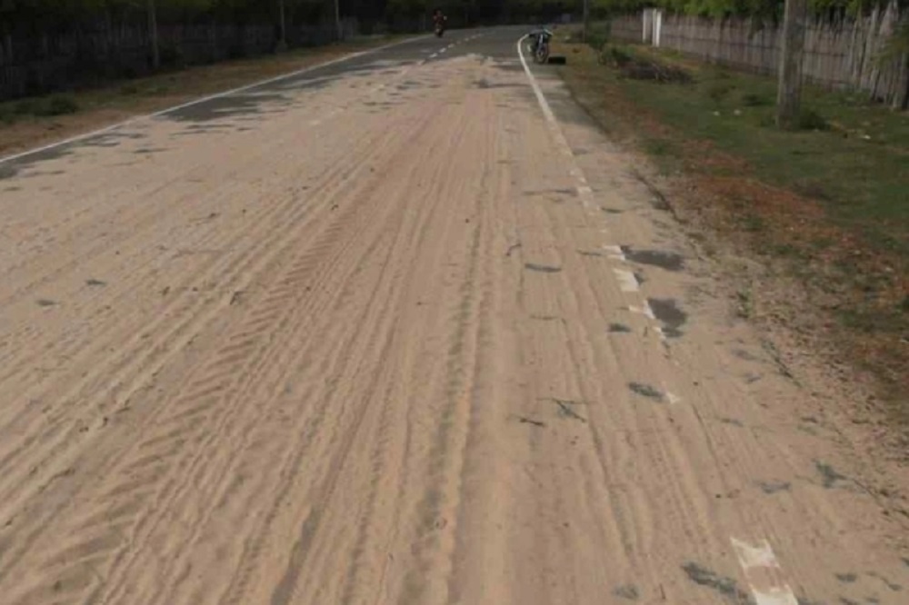 பளை சோரன்பற்று பகுதியின் பிரதான வீதியில் அதிகளவான மணல் வீதியில் கொட்டப்பட்ட நிலையில் சிதறுண்டு காணப்படுவதனால் விதியூடாக பயணிப்போர் பெரும் சிரமங்களை எதிகொண்டுள்ளனர்.