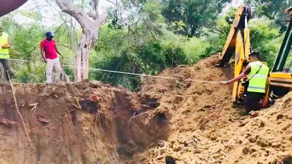 குறித்த அகழ்வு பணியில் குச்சவெளி பிரதேச செயளாலர், குச்சவெளி, திருகோணமலை மற்றும் புல்மோடை விசேட பொலிஸ் பிரிவினர், புடவைக்கட்டு செந்தூர் பிரிவு கிராம உத்தியோகத்தர் மற்றும் குச்சவெளி பிரதேச சபை உப தவிசாளர் ஆகியோரின் மேற்பார்வையின்கீழ் அகழ்வுப்பணிகள் முன்னெடுக்கப்பட்டன.