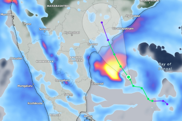தென்கிழக்கு வங்கக்கடலில் உருவான ஆழ்ந்த காற்றழுத்த தாழ்வு மண்டலம் நேற்று புயலாக வலுப்பெற்று, தற்போது சென்னையிலிருந்து கிழக்கு-தென்கிழக்கே 480 கிமீ தொலைவில் உள்ளது.